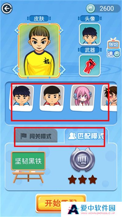 2. 进入游戏后,可以选择你喜欢的人物皮肤,并且有闯关模式和匹配模式可供选择。